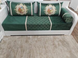 Tissu salon marocain Vert Royal Brodé – Style Classique et Élégant