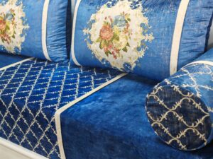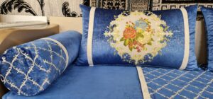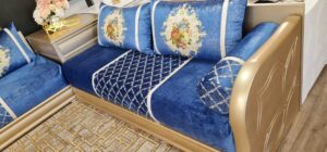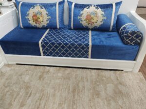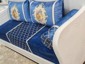 Sublimez votre salon avec ce magnifique tissu salon marocain brodé bleu royal, conçu pour offrir un style intemporel et sophistiqué. Avec ses motifs floraux élégants et ses broderies délicates, ce tissu apporte une touche de fraîcheur et d’élégance à tout salon marocain.