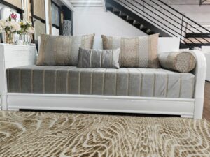 Un sédari réussi allie tenue, confort et esthétique durable. Les velours offrent une profondeur chaleureuse, les jacquards structurent les volumes, et les matières anti-taches simplifient la vie de tous les jours. Notre accompagnement vise un résultat cohérent et soigné, en accord avec vos murs, sols et rideaux — sans compromis sur l’élégance du salon marocain.